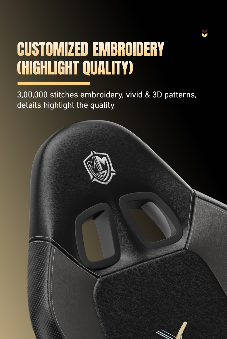 Material: PU+PVC cover, High density mould sponge, Steel Frame, 2D armrest, Butterfly Mechanism, Class 4 Gaslift, Nylon Base, 60mm PU coated Casters, Headrest & Lumbar Pillow
